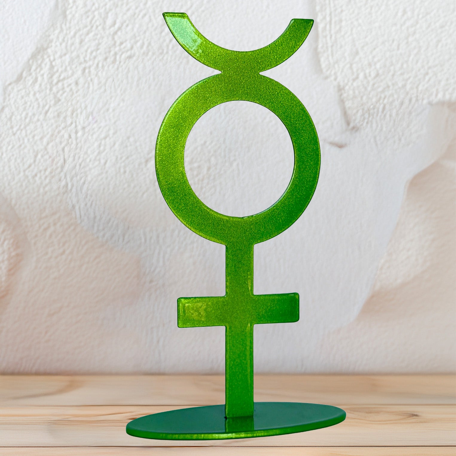 Celebrate intellect, clarity, and connection with this handmade metal Mercury symbol statue, designed to honor the planet of expression and swift thought.